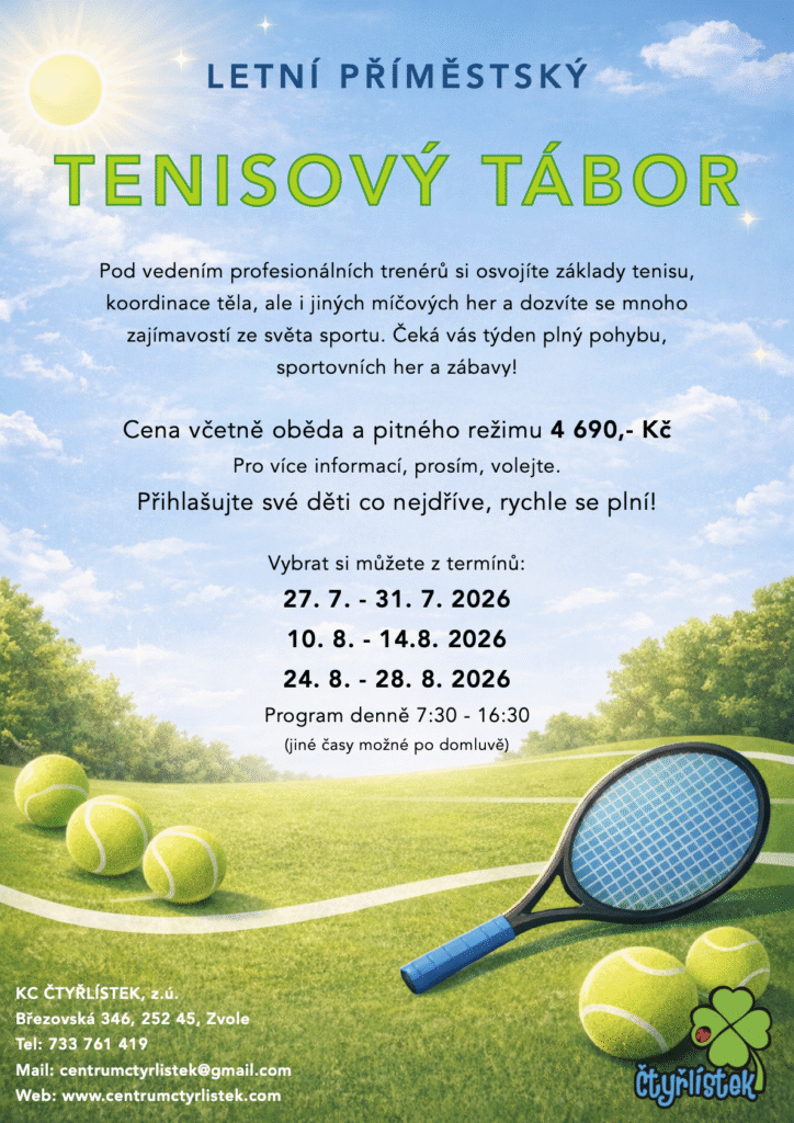 Tábory probíhají vždy od 7:30 do 16:30 a děti u nás čeká zábava, hry, sport i učení v přátelském prostředí.